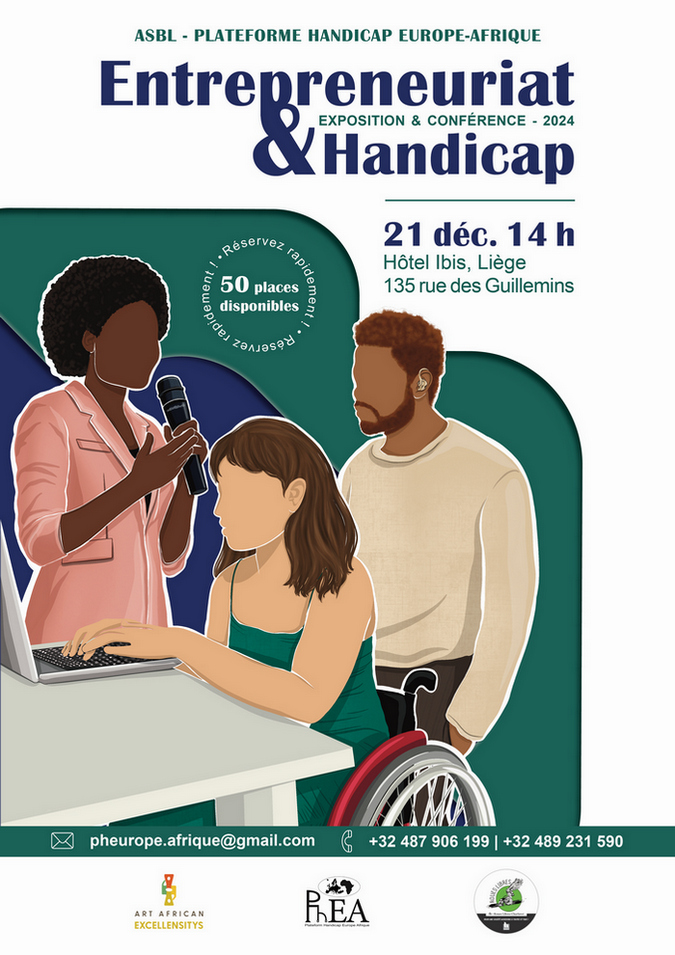 Ce 21 décembre 2024 dès 14h, se tient une exposition-conférence organisée par la Plateforme Handicap Europe Afrique, Art african Excellensitys et NMI Santé.