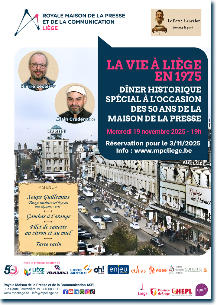 La Maison de la Presse et de la Communication de Liège, en collaboration avec Le Petit Lancelot invitent ses membres le mercredi 19 novembre 2025 à 19h.