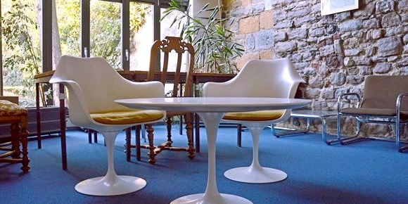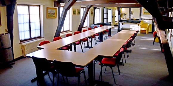 Lorsque la salle du rez-de-chaussée est occupée, une seconde salle polyvalente (16 places assises à table) permet d’accueillir des conférences ou autres réunions.